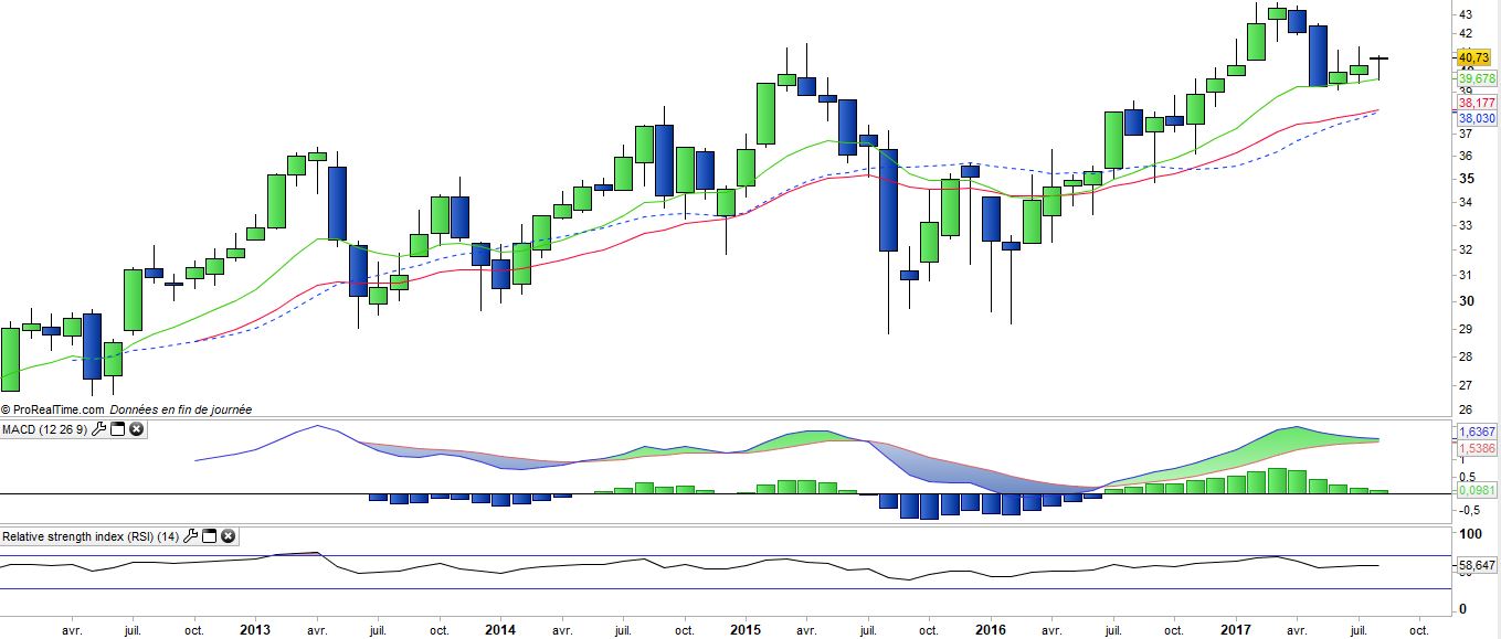 We include in our Watchlist the ETF Lyxor AU2 (Australian Index ASX-200) which develops a graphically attractive configuration and enjoys a long-term upward trend, while historically consolidations tend to be buying opportunities.