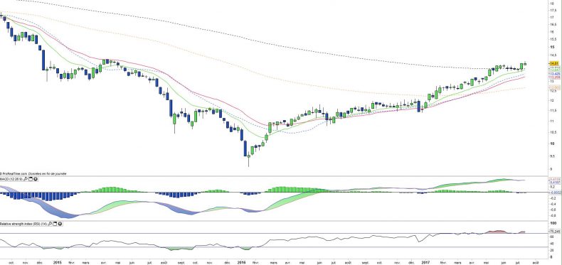 The Weekly analysis confirms our analysis positive. Here, the medium-term analysis is more positive than it seems. The MACD crossed negatively after a period of hesitation at the level of the M200exp, which has just been crossed clearly after a period of wavering at the EMA200 level which has just been crossed clearly. In fact all the indicators are positive and the MACD should rapidly give a bullish signal.